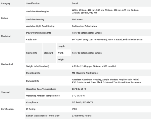 The BX2 allows for configuration with polarization or collimation. A backlight configured with collimation is best suited for applications requiring a higher degree of edge clarity when imaging object silhouettes.