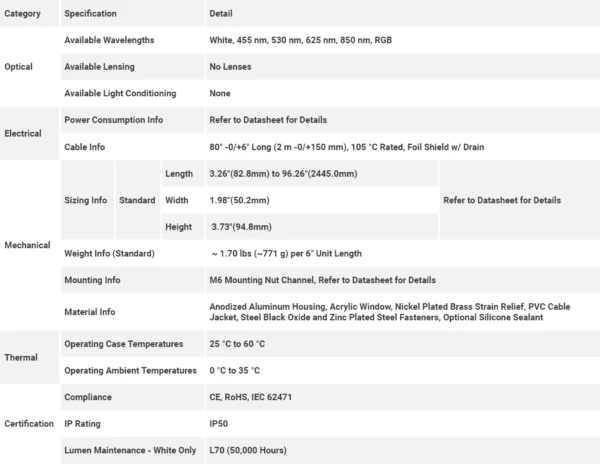 Equipped with ultra-high power industrial-grade LEDs, the BL138 Series can operate in both exceptionally bright strobe and continuous modes, depending on the control configuration. Its passive finned heatsink design optimizes thermal dissipation without active cooling fans. For applications exceeding 24 inches, optional uniformity balancing every six inches ensures consistent exposure across the entire active area.