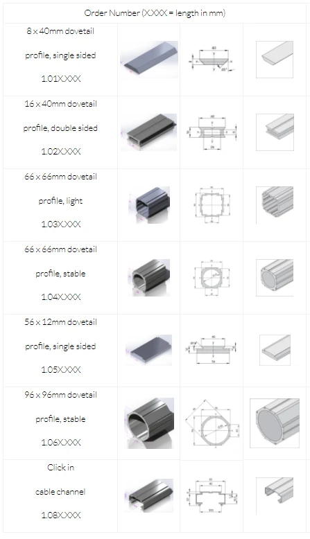 autoVimation can ship six different dovetail profiles in any length of up to 2m. Individual machining of profiles according to customer drawing is also possible. Dovetail profile frames are slim, easy to adjust and robust. A camera enclosure moves along the dovetail along a straight line – this is difficult to achieve with T-slot profiles. Once tightened, mounting brackets resist a displacement force of up to 2000N, so once adjusted a vision system keeps pointing in the right direction.