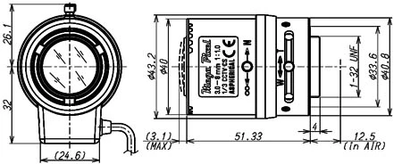 1/3 3.0-8mm F/1.0 Aspherical with connector Mega Pixel compatible Vari-Focal